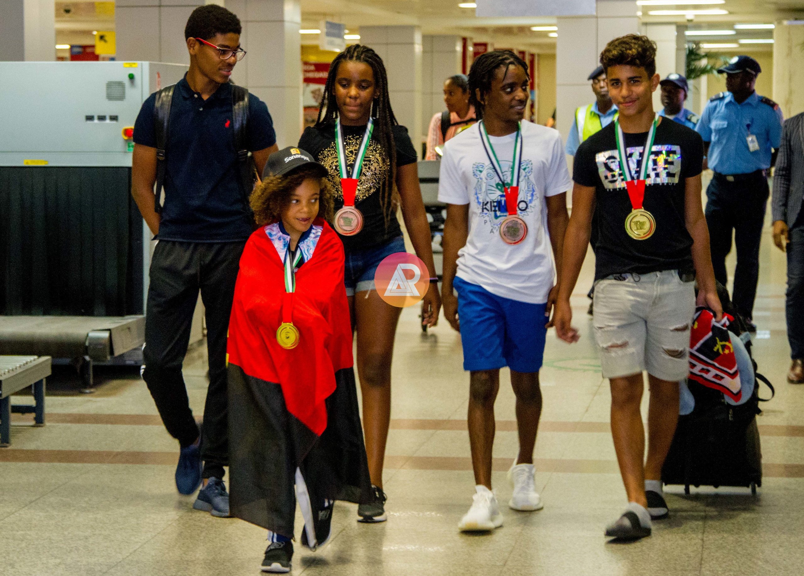 Depois de terem-se consagrados vencedores com medalhas de ouro e prata, os meninos Heliane Caio que saiu em 3° lugar na categoria Júnior menos 63k, Helio Caio 3° no Teen menos 50k, Cristian Chaves em 1° lugar na 57 categoria Teen, e Kiriane Neto em 1° na categoria infantil, foram recebidos de com fortes gritos, aplausos e abraços dos familiares e de vários cidadãos angolanos que estiveram no aeroporto para a recepção dos pequenos campeões, no Aeroporto Internacional 4 de Fevereiro, na tarde desta terça-feira (23) de Abril.