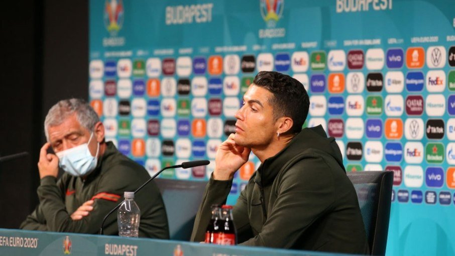 Ao se sentar para dar início a colectiva de imprensa, Cristiano Ronaldo afastou duas garrafas de Coca-Cola, patrocinadora do Euro 2020, que estavam em sua frente sobre a mesa, e em seguida levantou uma garrafa de água da mesma marca e exibiu dando a entender que o ideal é beber água e não Coca-Cola.
