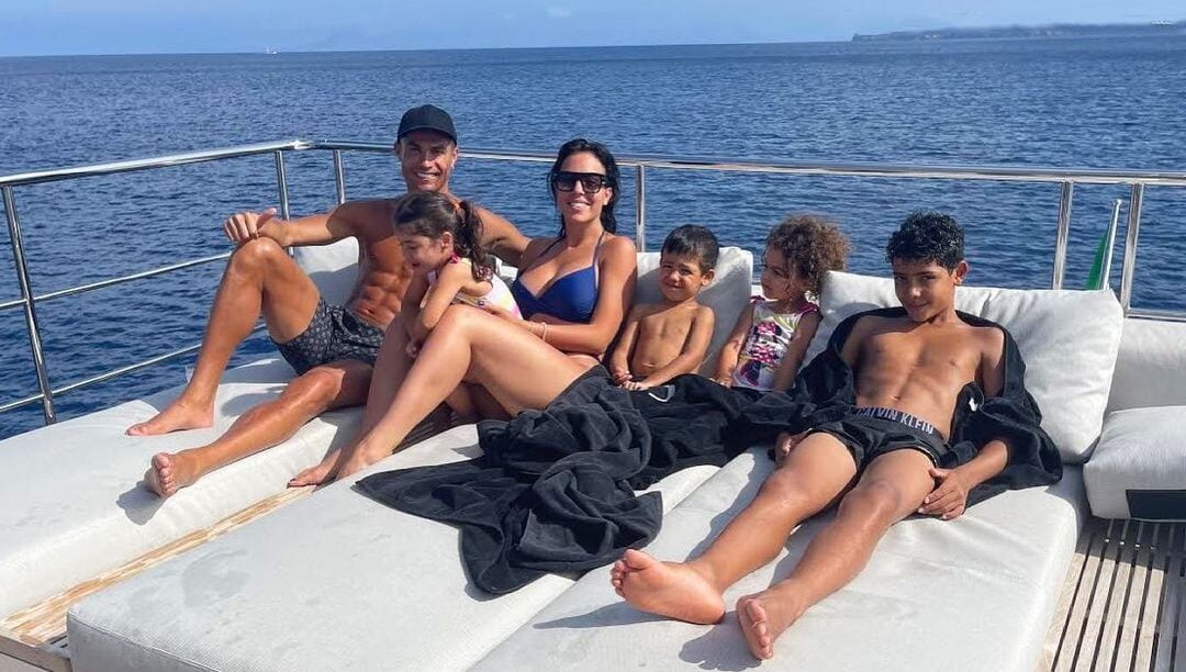 O craque português partilhou em seu Instagram, uma fotografia do momento familiar em que aparece junto da companheira, Georgina Rodríguez, e dos filhos, Cristianinho, Mateo, Eva e Alana em iate particular. E destacou que o momento actual é para descanso.