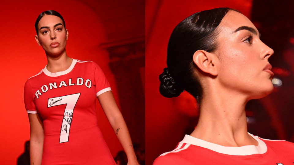A companheira de Cristiano Ronaldo foi um dos rostos que apresentou as peças da Vetements, coleção feminina outono-inverno 2024/2025, tendo passado pela passerelle com CR7 ao peito. Isto porque o look escolhido para Georgina foi inspirado no futebolista.