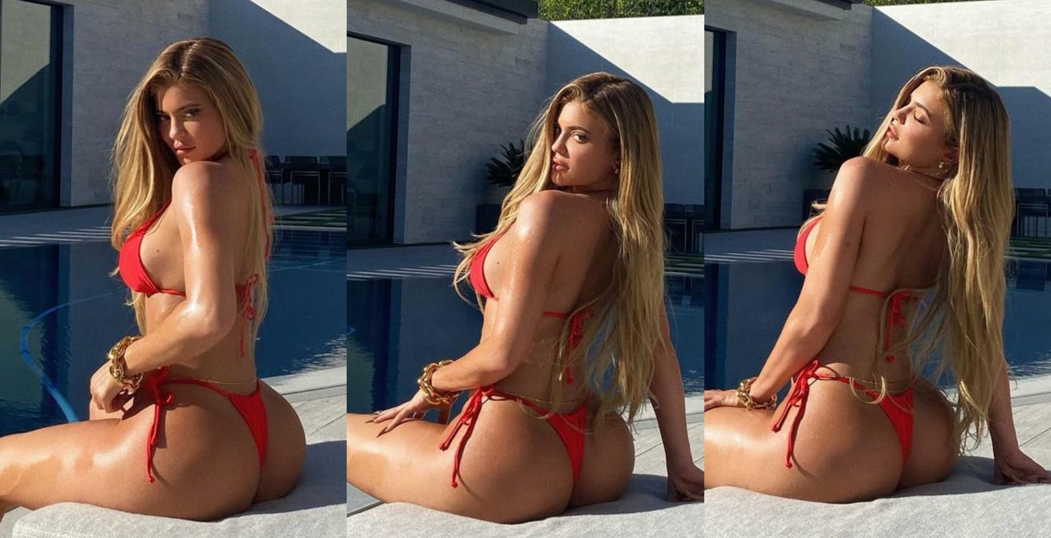 Dona de uma silhueta invejável, Kylie Jenner faz questão de as exibir nas suas redes sociais. Nas imagens partilhadas, tarde desta quarta-feira (18) de Novembro, a empresária surge de fato de banho vermelho, que dão visibilidade a sumptuosas curvas do seu corpo, onde o rabiosque era o elemento que se destacava entre os comentários, e que segundo os seus seguidores o mesmo ‘faz concorrência’ a Kim Kardashian, sua irmã mais velha.