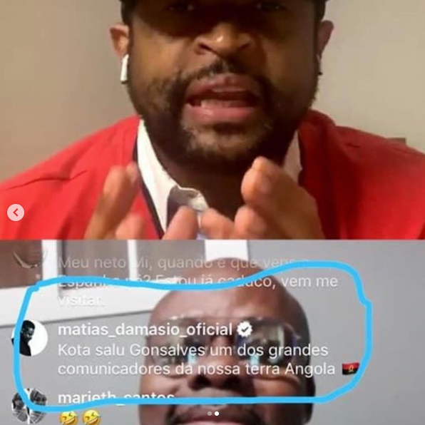 “Kota Salú Gonçalves, um dos grandes comunicadores da nossa terra Angola”, escreveu Matias Damásio, que recebeu aplausos e elogios dos seguidores presentes no directo.