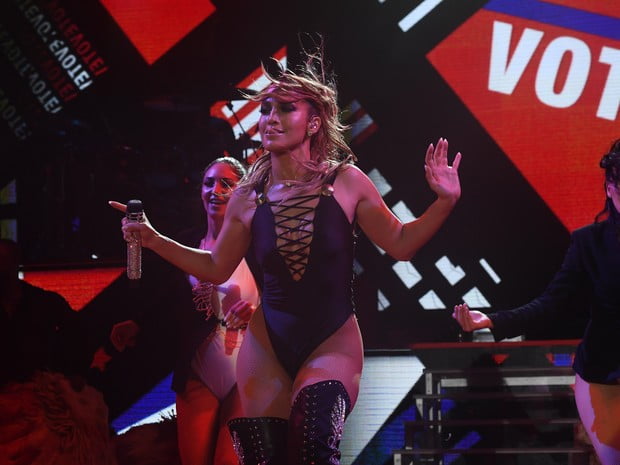 Jennifer Lopez cantou em evento de apoio a Hilary Clinton, realizado na noite deste sábado (29), em Miami, nos Estados Unidos. A Pop vestia um exuberante body preto, com o qual surpreendeu os fãs.