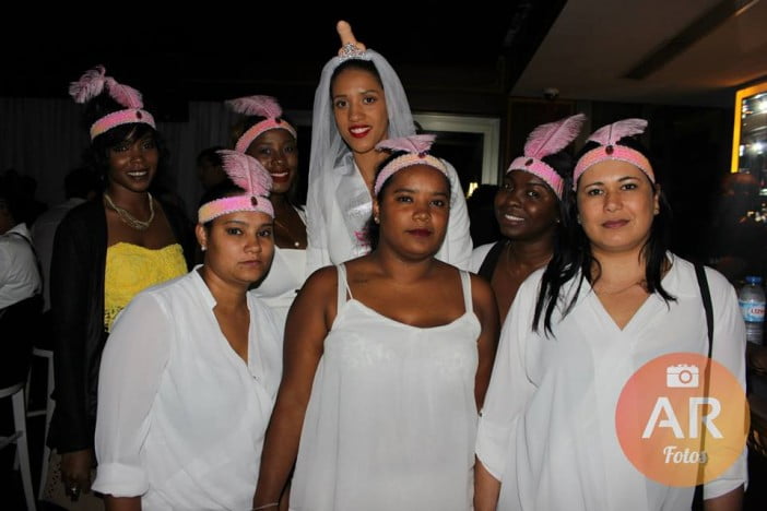 Com um Look extravagante de noiva na companinha de suas amigas que entraram no clima vestindo-se todas de branco sendo assim o centro das atenções da festa organizada pela “Rémy Martin” no Doo Bahr que foi um dos lugares eleito da noiva do momento para celebrar a sua despedida de solteira.
