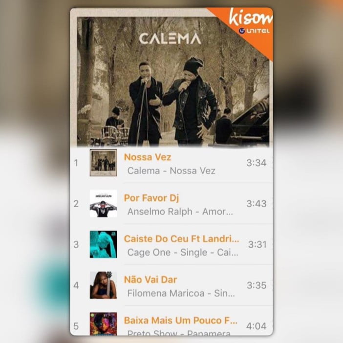 De novo, no topo! Os Calemas continuam na liderança do top Kisom , a principal plataforma de música streaming de Angola, pela segunda semana seguida. O Sucesso “Nossa Vez”, também se mantém em alta no Youtube, onde é das mais reproduzidas do momento, totalizando mais de 5 012 302 visualizações.