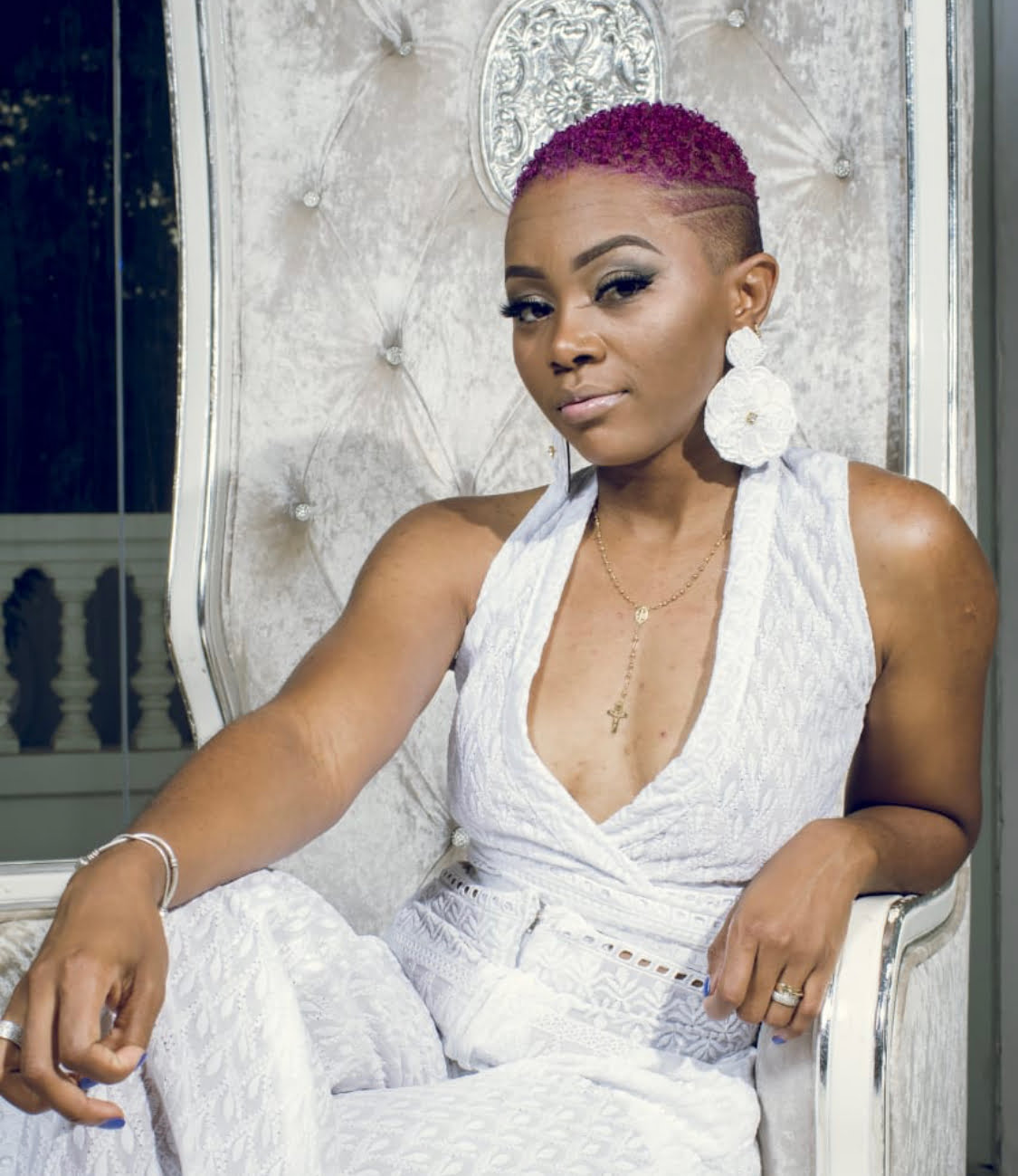 “Foi um processo, começou quando senti a necessidade de usar o cabelo natural. Deixei de usar químicos, cortei o meu cabelo há sensivelmente 7 anos. Quando cortei o cabelo, não fiz a transição por ser um processo muito doloroso e demorado, então preferi logo cortar. Mas, cortei porque queria usar o cabelo natural, não porque me sentia bem careca, mas depois deixei o cabelo crescer, ficou normal, mas só que depois senti que tinha a necessidade de ter uma identidade própria, não queria mais ter o cabelo igual ao das outras mulheres, então fui cortando o cabelo. Comecei com os lados e depois senti a necessidade de cortar todo ele, por que me apercebi que era um acessório, não era algo primordial e hoje sou feliz sem ele”.