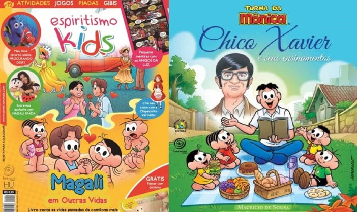 Porém a relação da Turma da Mônica com o espiritismo ganhou força nos últimos dias, devido ao lançamento do livro “Chico Xavier e Seus ensinamentos”, que tem a participação dos principais personagens da Turma (Mônica, Cebolinha, Cascão e Magali) e está com suas vendas previstas ainda neste mês.