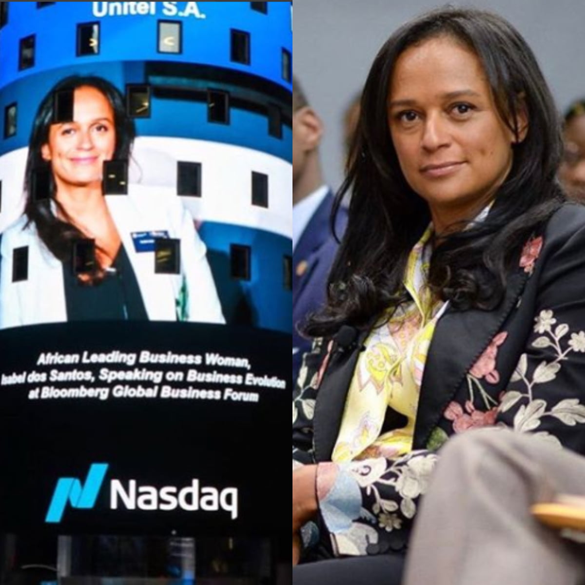 Actualmente, a filha do ex-presidente da República de Angola, Isabel dos Santos é sem sombras de dúvidas uma das empresárias mais bem sucedida dos últimos tempos. Com os seus feitos no mercado nacional e agora Internacional, a empresária recorreu a uma rede social para dar as conhecer aos seus seguidores o mais novo sonho realizado, o de estar representada na Torre da NASDAQ, em Nova York, EUA, onde ilustra Isabel a falar num fórum de negócios da Bloomberg.