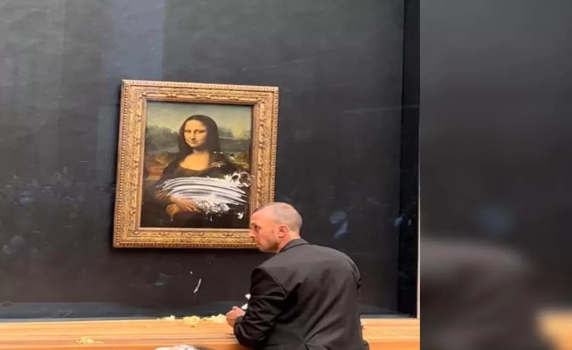 Segundo informações da revista digital G1, um dos visitantes teria atirado o que parece ser uma torta, no quadro. Acredita-se que o suspeito que não teve a sua identidade revelada, estava disfarçado/a com uma peruca e usava uma cadeira de rodas.