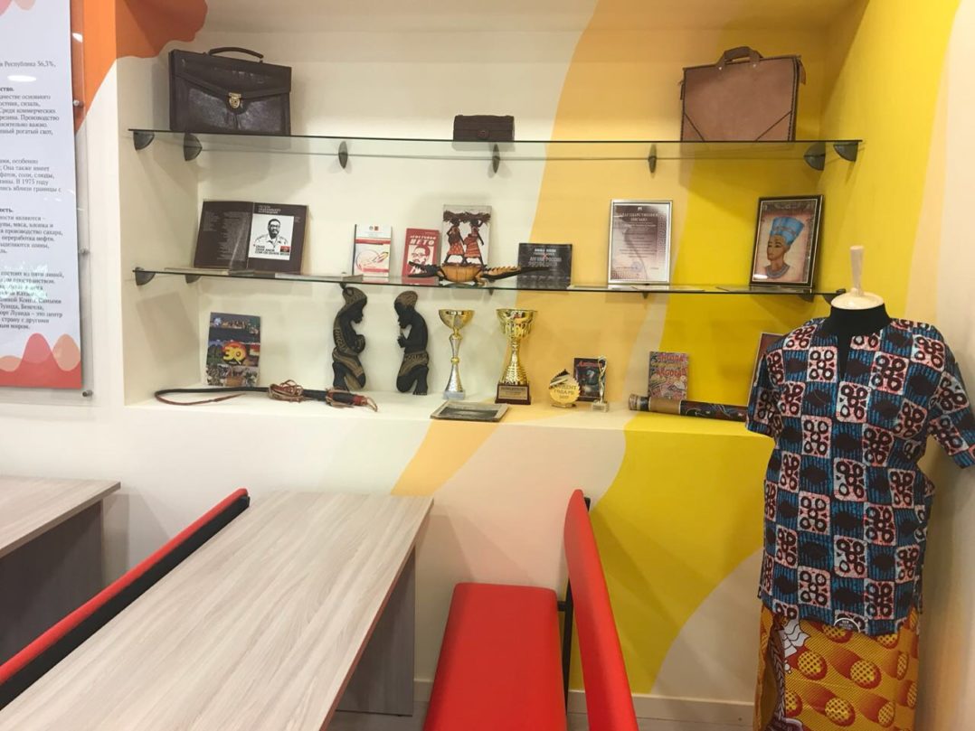 O projeto da primeira sala temática de Angola foi elaborado, obedecendo o estilo característico africano, com as carteiras projetadas, panos de “Samakakas” e as paredes com quadros que narram um pouco da história sócio política de Angola.